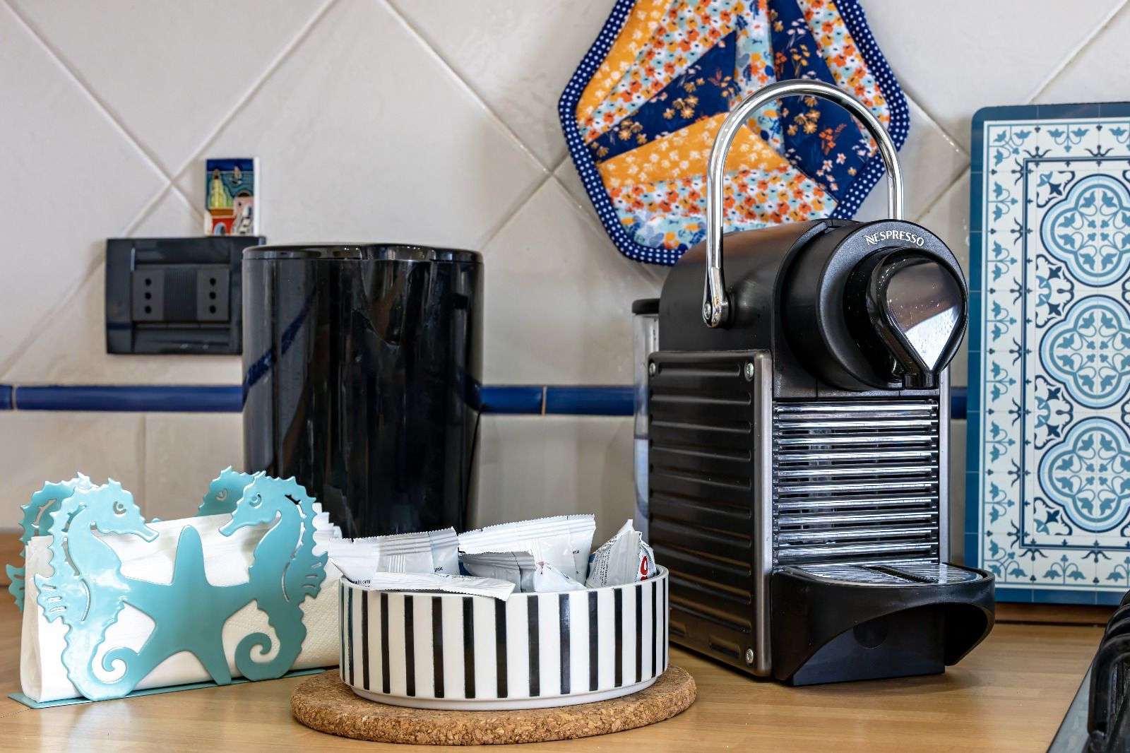 Cucina attrezzata con lavastoviglie, forno, frigorifero/freezer, macchina del caffè con cialde