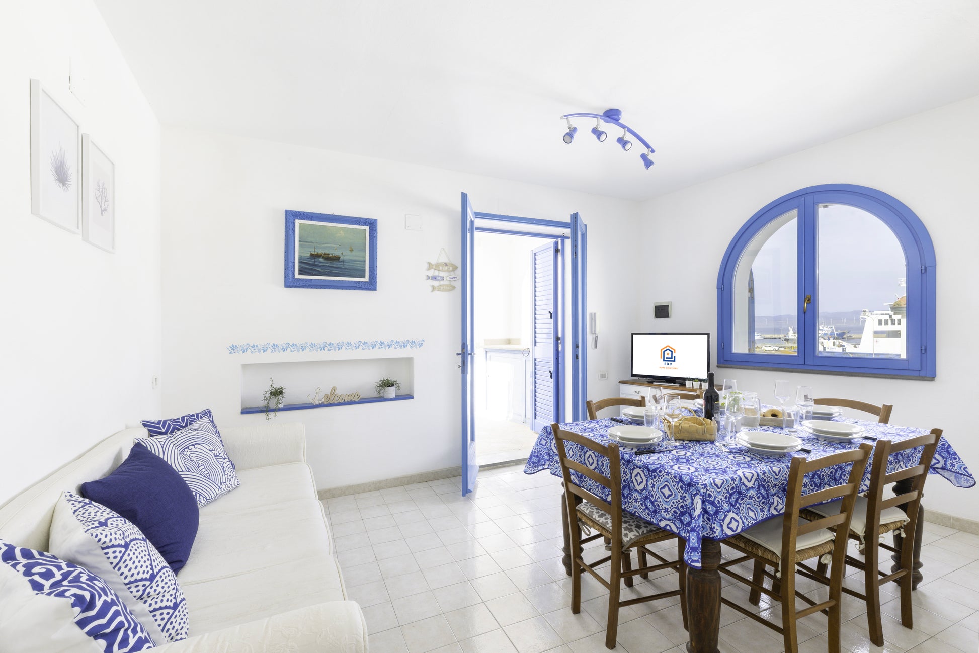 Completano l'appartamento un bagno moderno dotato di una spaziosa doccia, asciugacapelli e set di cortesia, e una meravigliosa terrazza con vista sul porto, ideale per colazioni all’aperto o per rilassarsi al tramonto.