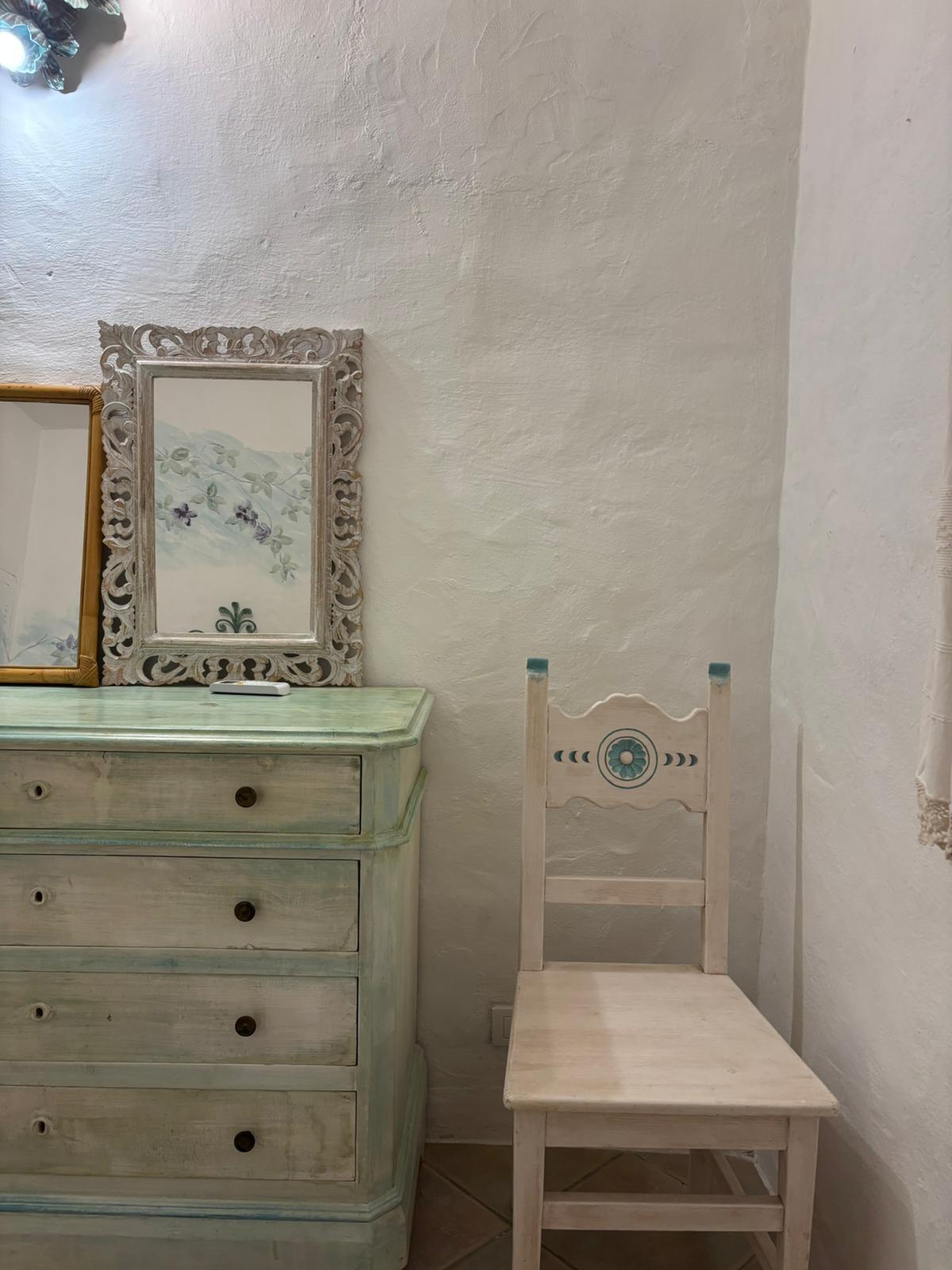 All’ingresso si trova la dependance privata, elegante e indipendente: una camera matrimoniale accogliente, cucina-soggiorno con divano letto e bagno dedicato — perfetta per chi desidera discrezione e comfort.